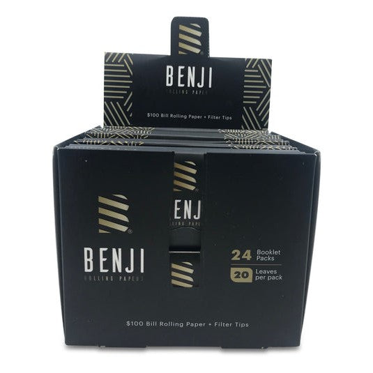 Show the haters you mean business with these $100 Dollar Bill Rolling Papers from Benji. These high-quality rolling papers are made with all-natural, non-toxic vegetable oil coloring and are nearly identical to real $100 notes! Every Benji Rolling Paper offers a slow and smooth burn, with no nicotine or tobacco, for the most enjoyable smoking experience possible. Each booklet contains twenty $100 Dollar Bill Rolling Papers and twenty filter tips with a full box of Benji Papers containing 24 booklets (480 papers).